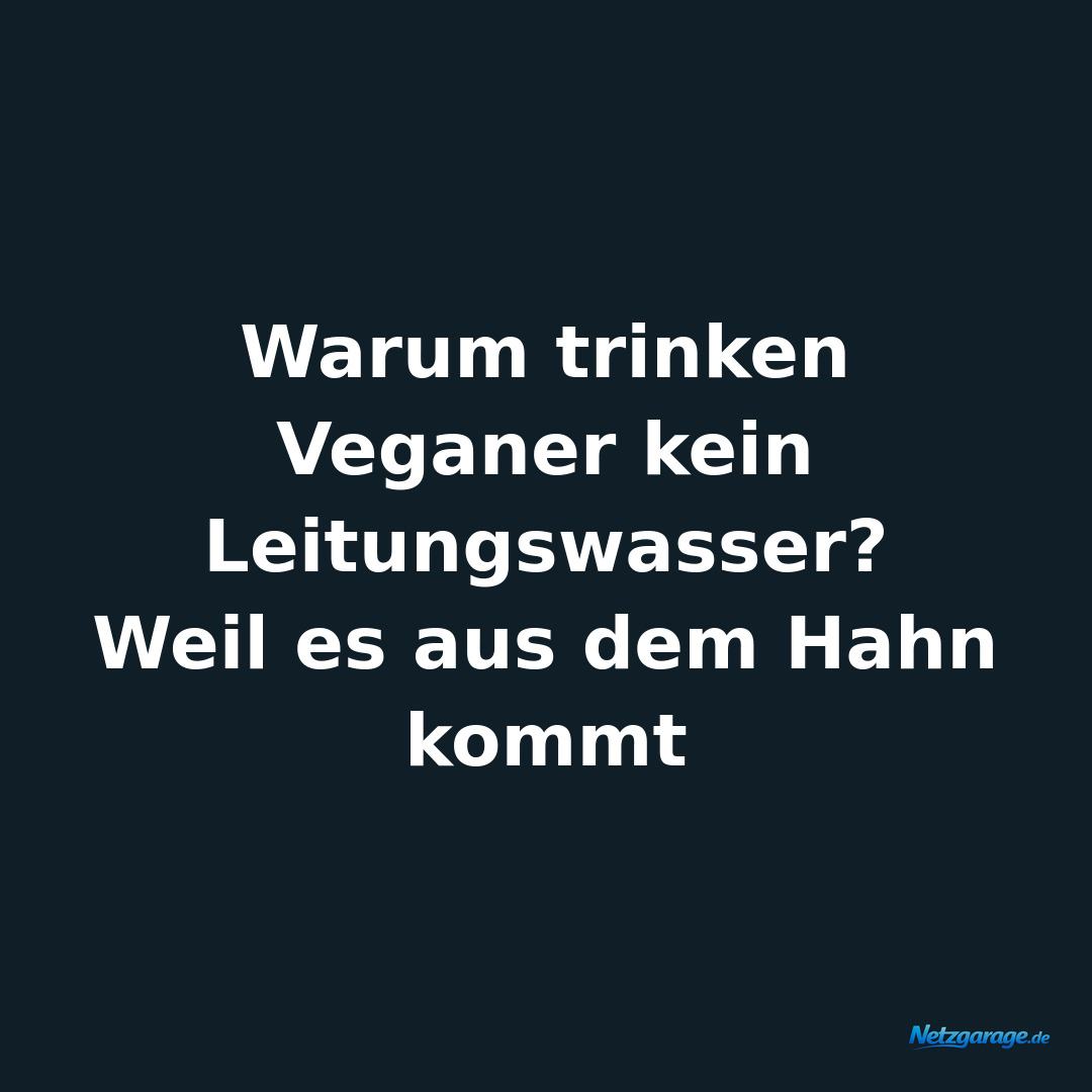 Allgemein 12.03.2026 Warum trinken Veganer kein Leitungswasser? Weil es aus dem Hahn kommt 👍 1 👎 0 ↗ Teilen ⬇ Bild 💬 WhatsApp 👥 Facebook 𝕏 Twitter ✉️ E-Mail 📋 Link kopieren