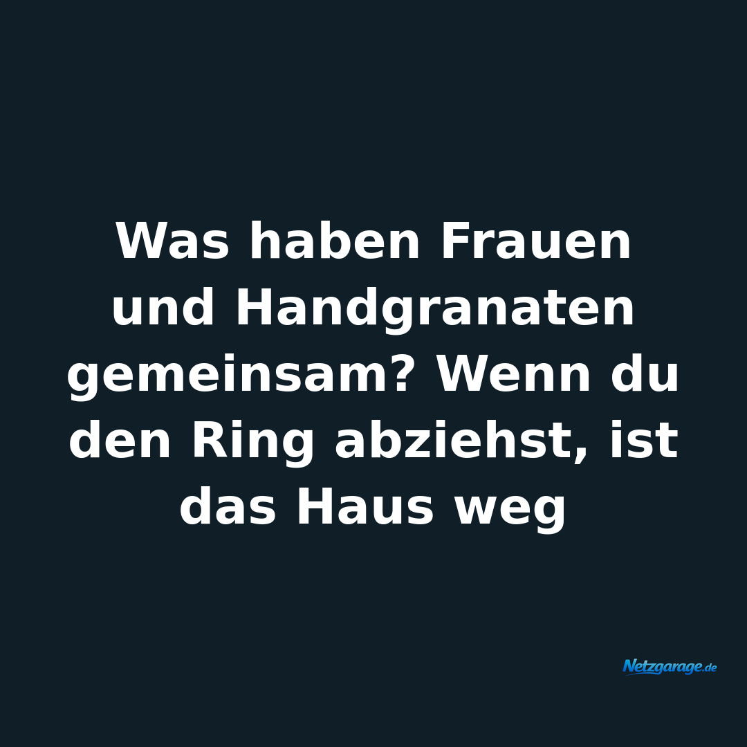 Allgemein 12.03.2026 Was haben Frauen und Handgranaten gemeinsam? Wenn du den Ring abziehst, ist das Haus weg 👍 0 👎 0 ↗ Teilen ⬇ Bild 💬 WhatsApp 👥 Facebook 𝕏 Twitter ✉️ E-Mail 📋 Link kopieren